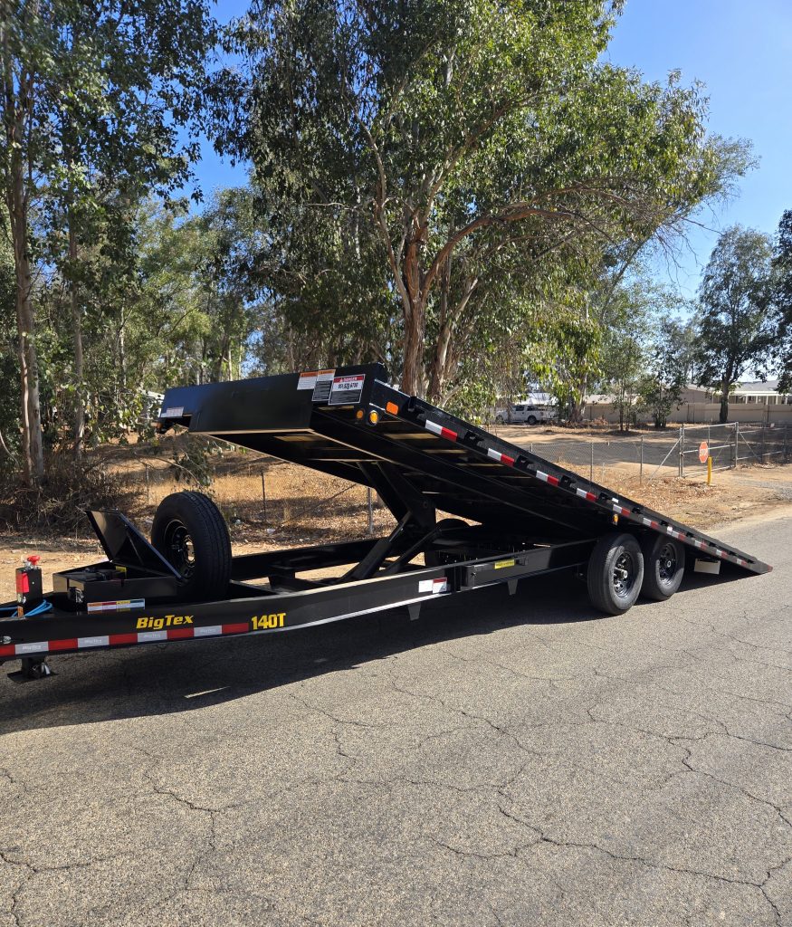 With a 24′ deck, this trailer is widely versatile, with the fully flat deck, it makes for easy side-loading! The whole deck tilts and essentially becomes the ramp making for easy loading/unloading.